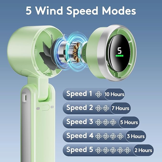 Whether you're relaxing on the couch, traveling, commuting, camping, or simply surviving a hot summer day, this compact fan folds and fits into your lifestyle effortlessly — as a handheld, neck-hanging, or desktop fan.